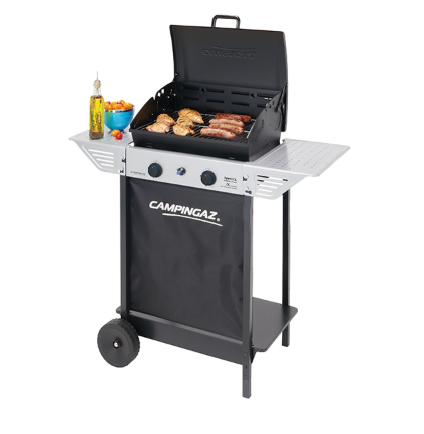 Barbacoa de gas, con dos quemadores y fácil de transportar.