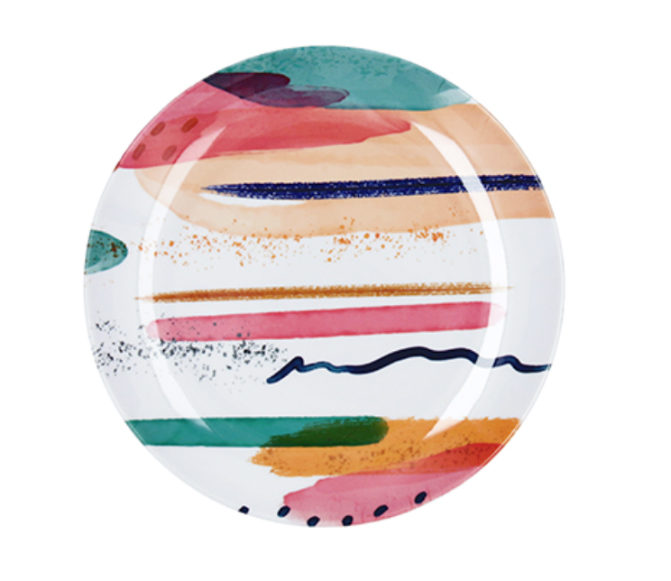 Plato postre de melamina, modelo acuarela. Diámetro de 20 cm.